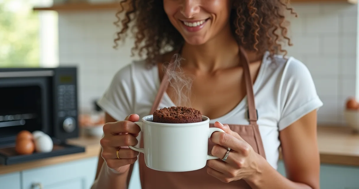 Excesso de farinha ou batimento da massa. Meça com precisão: para uma caneca, use 4 colheres de sopa de farinha. E misture só até sumir os grumos. Outro erro comum é cozinhar demais; 3 minutos em potência alta já são suficientes para não ressecar.