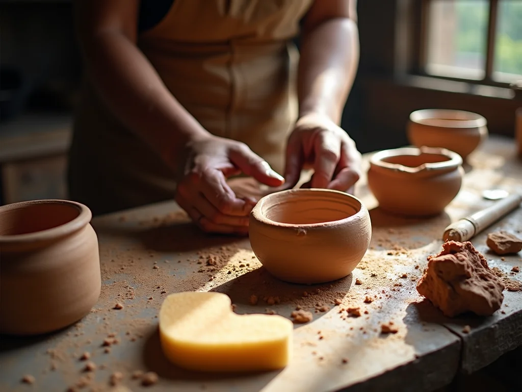 | Ferramentas Essenciais: Da Esteca à Esponja, Seus Melhores Amigos | Estecas para modelar e detalhar, esponja para alisar, arame para cortar a argila. | Invista em estecas de diferentes formatos. Mantenha a esponja sempre limpa e úmida. | Facilitam o trabalho, permitindo maior controle e precisão. |