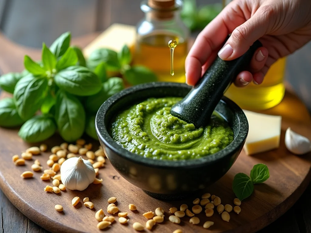 Dica Prática: Para um pesto ainda mais aromático, doure levemente os dentes de alho em um fio de azeite antes de triturar com os outros ingredientes. Isso suaviza o sabor forte e realça a doçura.