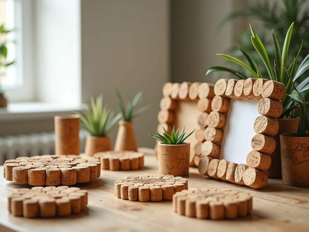 | Porta-Copos Personalizados e Charmosos | Protege suas superfícies com estilo. | Cole rolhas lado a lado em um círculo ou quadrado. Use cola forte para artesanato. Para um acabamento mais liso, você pode lixar levemente as bordas. Adicione feltro na parte de baixo para não riscar os móveis. |