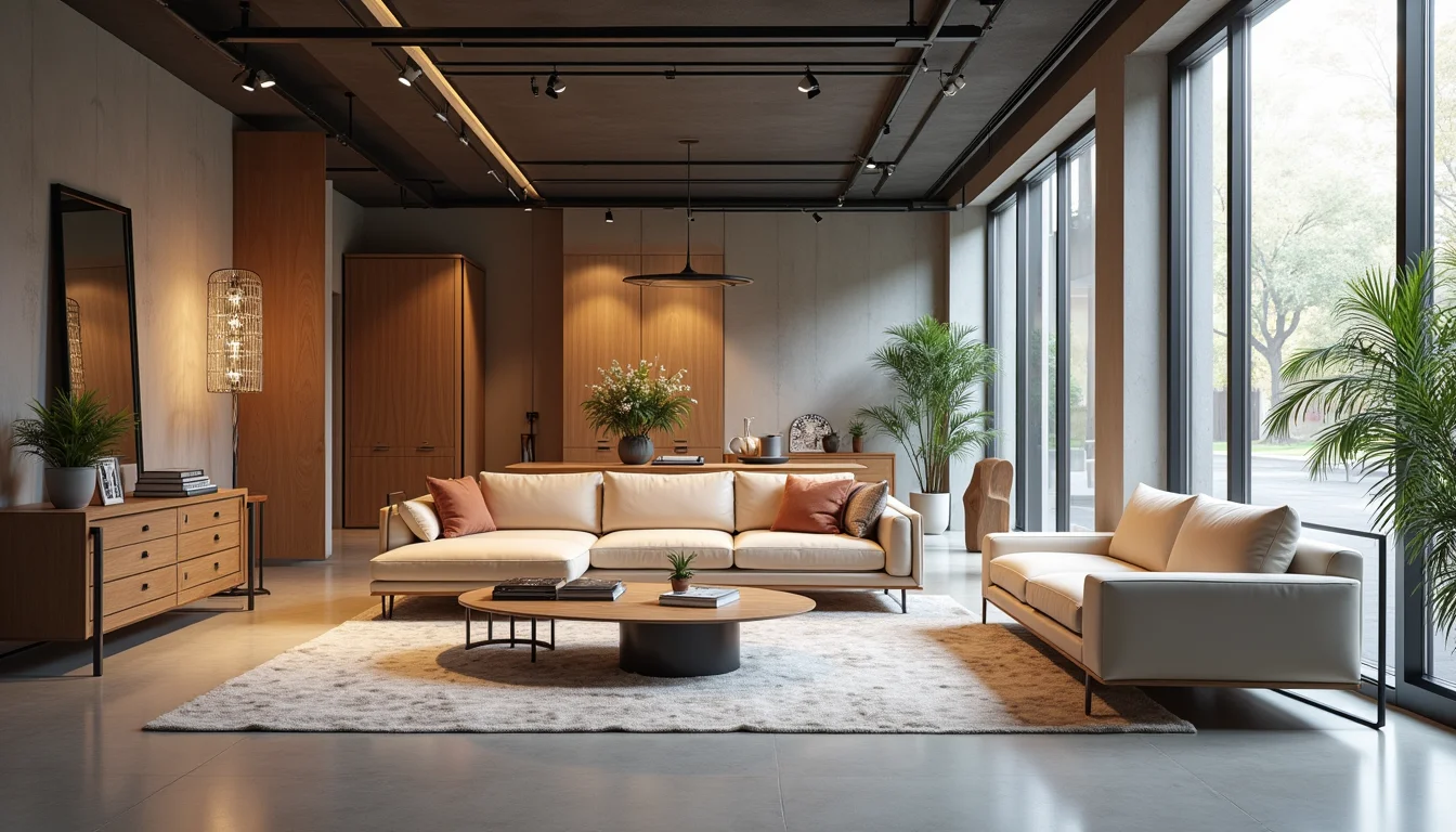 A iluminação ideal combina luzes gerais para clarear o ambiente com focos direcionados para destacar peças específicas. Luzes quentes criam uma sensação de aconchego, essencial para móveis. Considere um guia completo de iluminação para showrooms de móveis para entender as nuances.