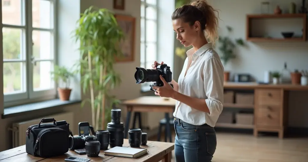 Mercado de usados é seu amigo. Equipamentos de gerações anteriores, como câmeras Canon ou Nikon, ainda entregam resultados fantásticos. Comprar usado em bom estado é uma economia gigantesca. Verifique o número de cliques e o estado geral. Sites como o da Escola Criattiva dão umas dicas ótimas sobre isso.