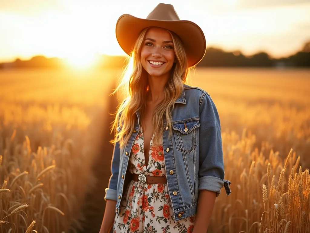 Aproveite para ousar nos acessórios! Um cinto de couro com fivela marcante faz toda a diferença, e um chapéu estiloso te protege do sol sem perder o charme. As botas de couro, claro, não podem faltar, mas experimente modelos mais claros ou com detalhes diferenciados pra combinar com o clima do verão. Falando em “peças-chave”, que tal um “vestido western” para arrasar?